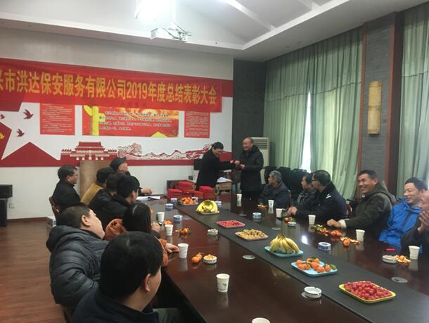 最后,公司副总经理骆仁德对2019年涌现出了一批爱岗敬业、无私奉献的保安大队长、保安中队长、保安班长、保安员等42名优秀员工进行了表彰,希望新的一年里再接再厉,再创佳绩,同时,全体保安员要以优秀为榜样,忠于职守、争先创优,为洪达保安公司的社会效益和经济效益双丰收作出更大的贡献。