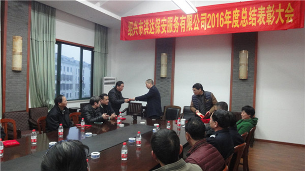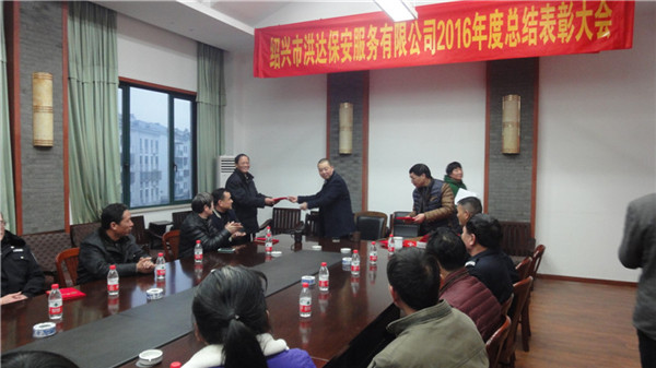 1月19日下午,绍兴市洪达保安服务有限公司2016年度年终总结表彰大会在公司会议室隆重召开,公司总经理陶留强、副总经理徐丽华、副总经理沈传斌、公司全体行政人员、21名先进代表参加了此次会议。