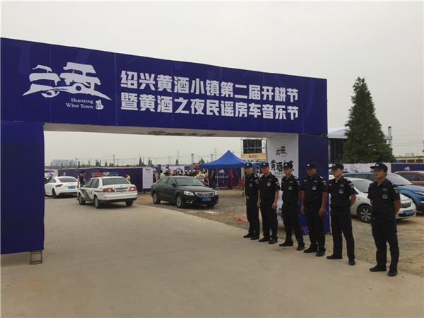 8月5日,绍兴黄酒小镇第二届开耕节暨黄酒之夜民谣房车音乐节在绍兴市东浦镇隆重举行。为了确保活动期间的安全,维护观众秩序,引导周边车辆停放,绍兴市洪达保安服务有限公司的40名安保人员在下午16时30分活动检票前一个小时就到达了活动现场,直至夜晚22时30分活动结束,安保人员认真细致的工作态度给现场观众留下了良好的印象,也为我公司顺利完成此次安保任务做出了贡献。