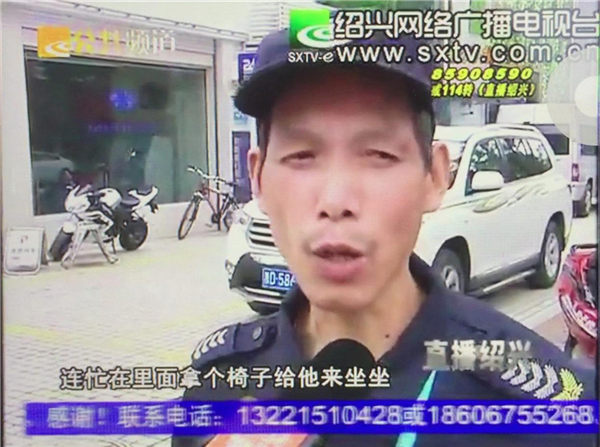近日,绍兴市洪达保安服务有限公司驻绍兴银行保安员徐志红小小的感动了下绍兴人民。“一把椅子,一片温情”, 保安徐志红平时工作热情礼貌、想人所想、急人所急,10月18日那天,有群众带着绍兴公共频道直播绍兴栏目组找到了他,对其给予了高度的赞扬。原来,在两天前,保安员徐志红执勤时,看到有老年人离开银行后,站在路边等车。徐志红见其行动不便,连忙从银行里搬了个椅子给老年人。这个小小的举动不经意间弘扬了尊老爱幼的中华民族传统美德,也为绍兴市洪达保安服务有限公司树立了良好的社会形象。